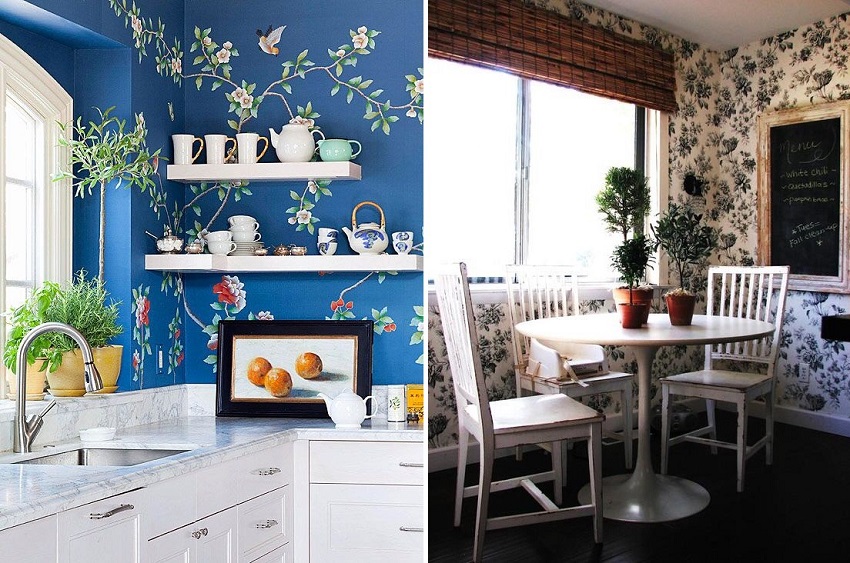 Design of combined wallpaper in the kitchen: photos and unusual ideas
