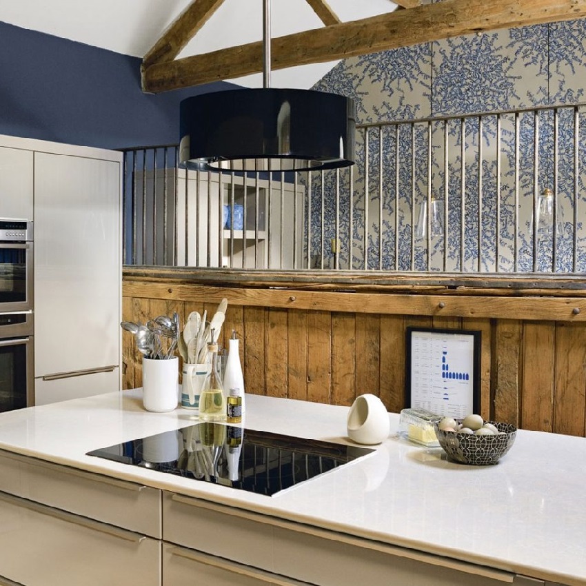 Matching colors and materials is a great way to keep up with the 2017 fashion trend. Subject to the correct selection of materials, even a compact kitchen is suitable for a combined design.