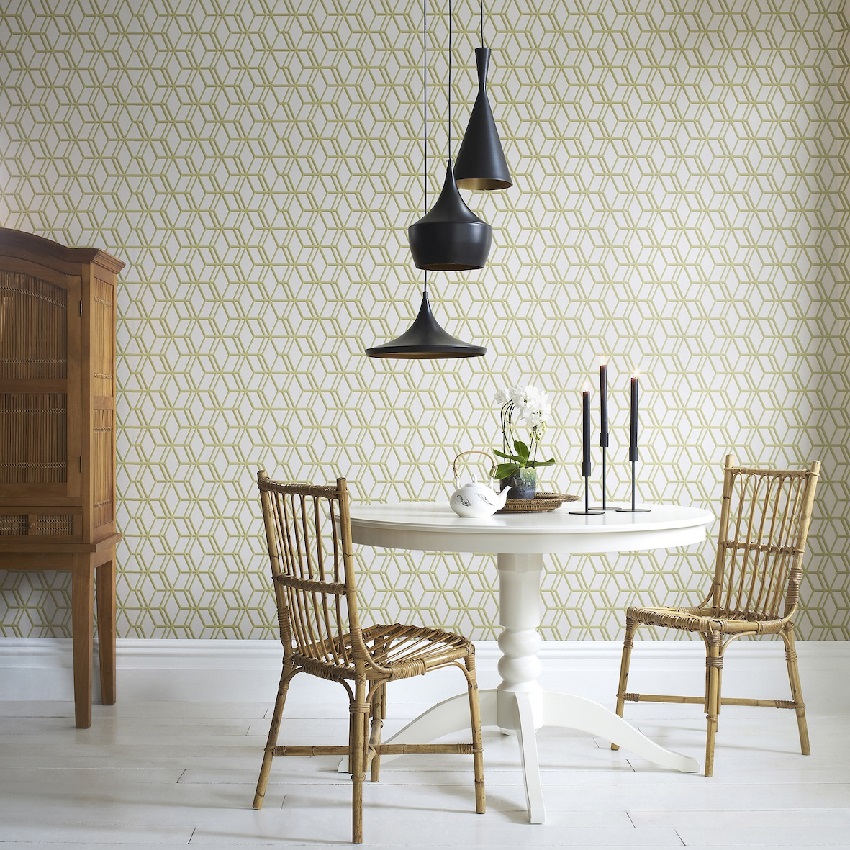 - in the photo of fashionable wallpaper for the kitchen in 2017, geometric plots are often present, if you choose wallpaper with intertwining shapes and stripes, you can create an unusual effect due to the play of light and shadow on the coating.