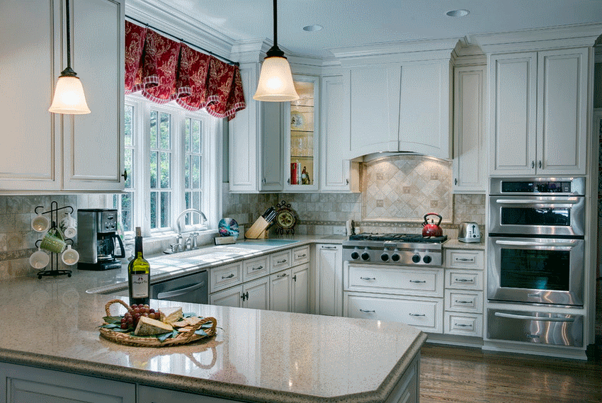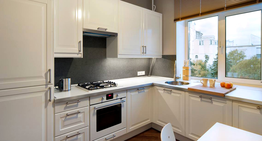 When planning a large-scale renovation, involving a complete alteration of the kitchen space, you can turn the window sill area into part of the work surface. To do this, you will need to place the furniture set along the corresponding wall. In this case, a sink or stove can successfully fit in opposite the window.