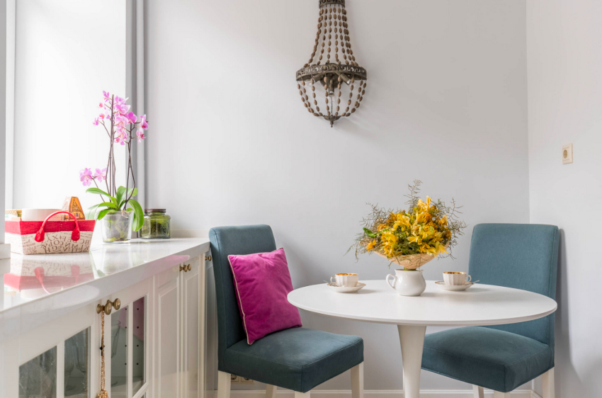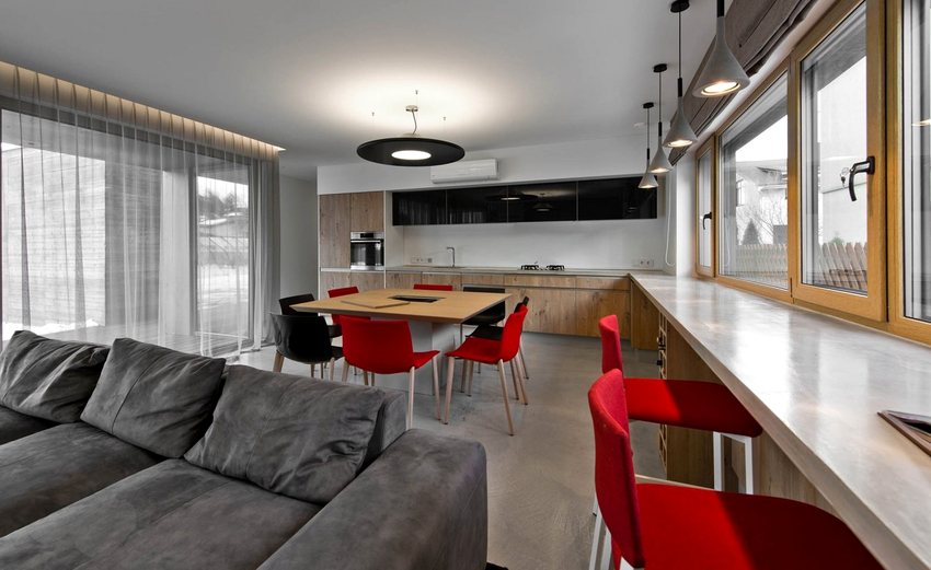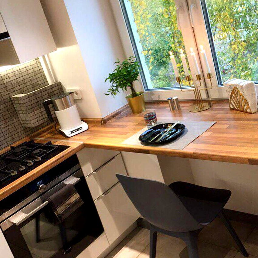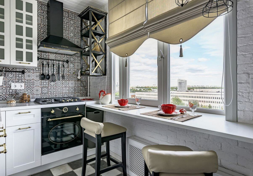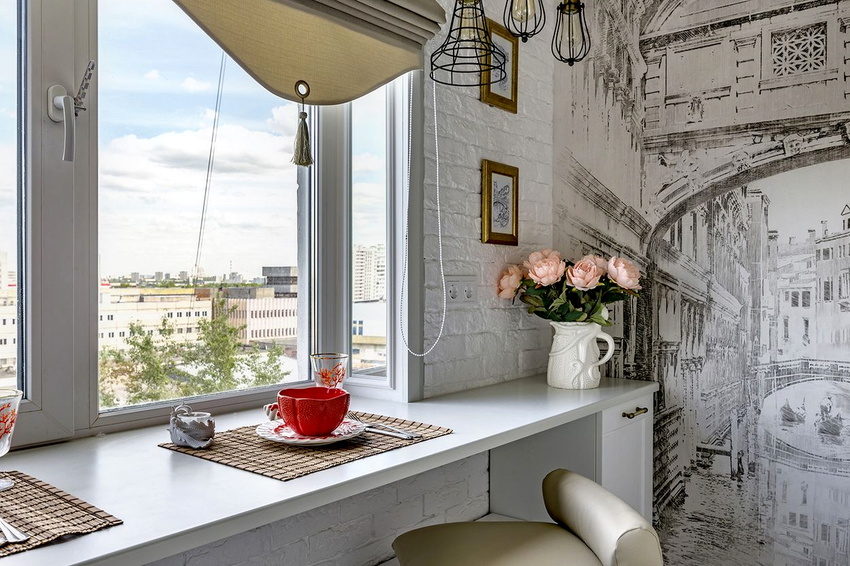 This solution is the least common among designers in the case of organizing space near the window. Nonetheless, a countertop instead of a window sill in the kitchen as an impromptu dining table is a great way to rationalize space.