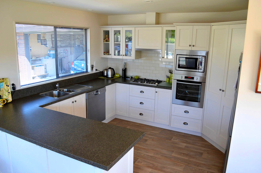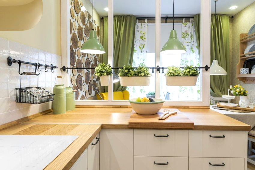 One of the most successful solutions in the kitchen is a countertop sill. In this case, you can use the free space as efficiently as possible, both under the windows and at the window level.