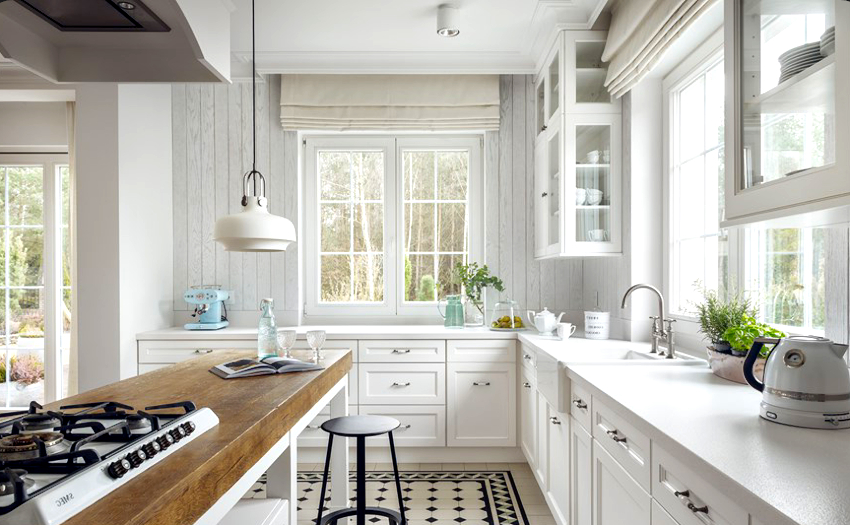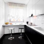 The presented option is suitable for both small and spacious rooms and can serve as an independent design technique. By making the right choice of materials, shades, as well as combining with other pieces of furniture, a kitchen with a countertop by the window can be turned into an original and stylish room.