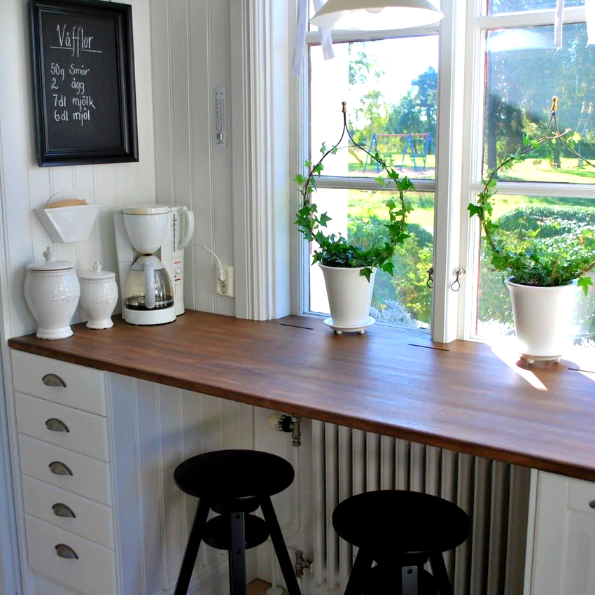 Note! The window sill, which serves as a bar counter, requires chairs with footrests of suitable height. It is important that the seats and the lower edge of the worktop are spaced approximately 30 cm apart.