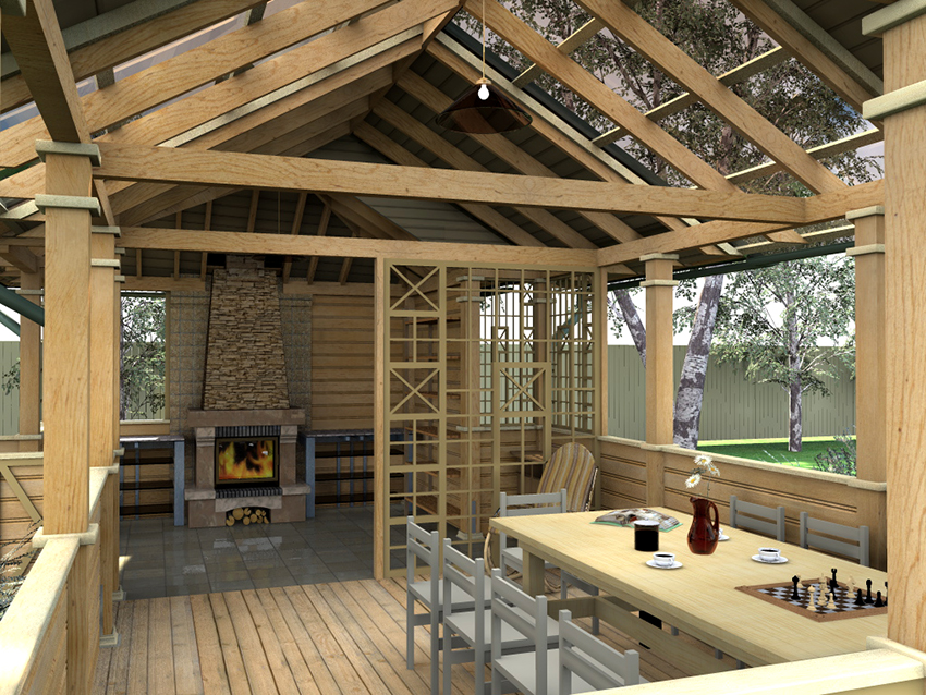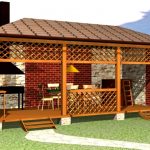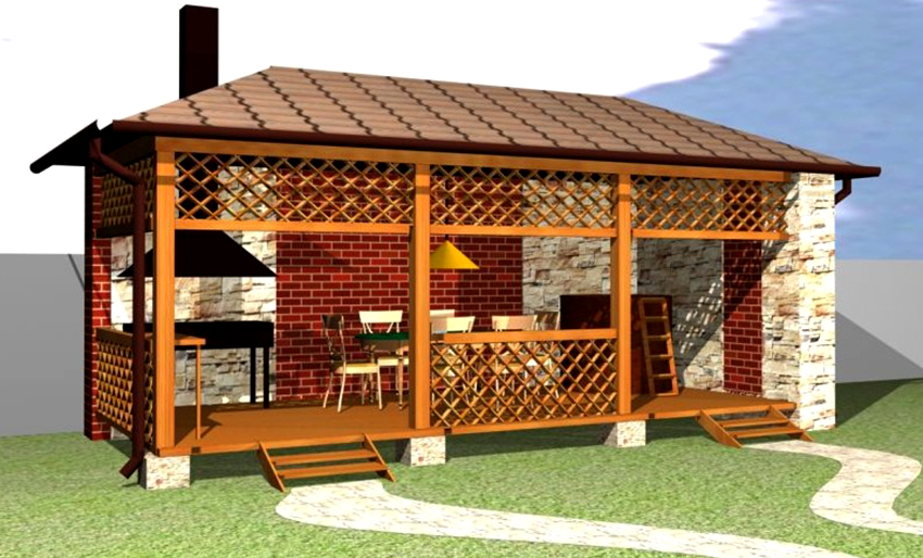- Open kitchen gazebo. It is considered an excellent option if you want to complement the kitchen with barbecue. In this case, you need to lay the foundation, solid walls and a solid roof.