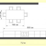 After drawing all the items on the drawing, it will become clear which dimensions of the kitchen table are suitable for installation, and the convenience of the configuration of the working triangle is assessed and the free area is calculated, which is formed after the installation of everything necessary. If, considering the plan, it becomes clear that too little space is left for unhindered movement, then at this stage it is necessary to decide which items can be discarded.