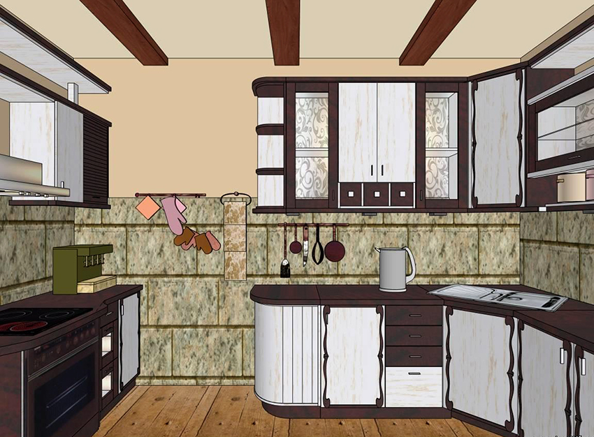 If you do not just draw a kitchen project on a sheet of paper, but create a full-fledged 3D design, then, in addition to calculating the required sizes of a kitchen set, appliances and other furniture, you can decide in advance on the color of walls and furniture and even with the placement of the decor elements you like. The finished 3D visualization will allow you to admire the picture of the finished kitchen and decide whether you need to leave your ideas unchanged or you need to make some adjustments.