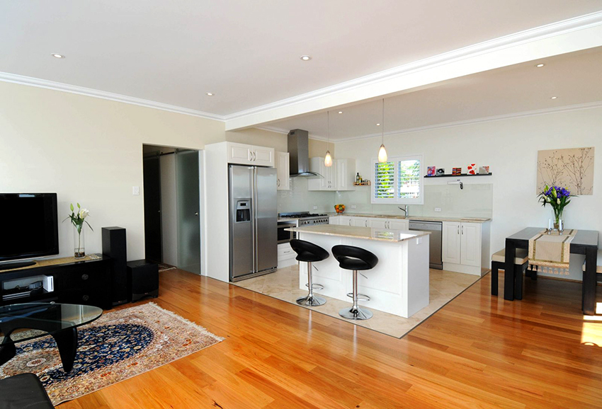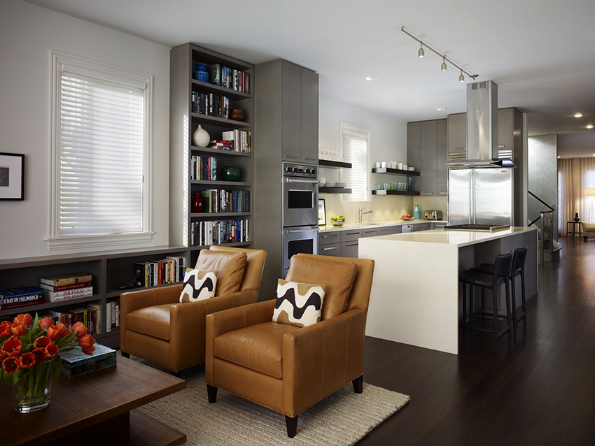 When combining rooms, you need to familiarize yourself with some of the disadvantages of this project option. The main problem is the noise of household appliances. A refrigerator, dishwasher, blender and meat grinder are considered to be the loudest appliances that can interfere with communication in the living room area. Another problem is the need to constantly maintain order in the kitchen, because it is, in fact, part of the living room. You also need to take into account that if you buy a not too powerful hood, then all the smells from the kitchen will instantly get into the living room area.