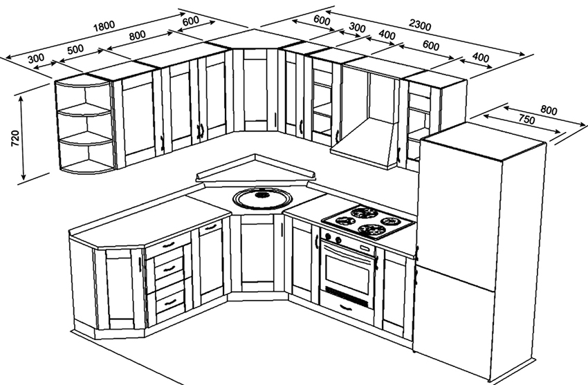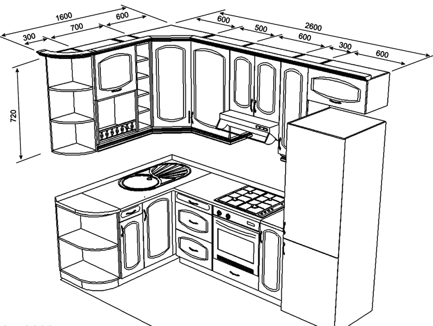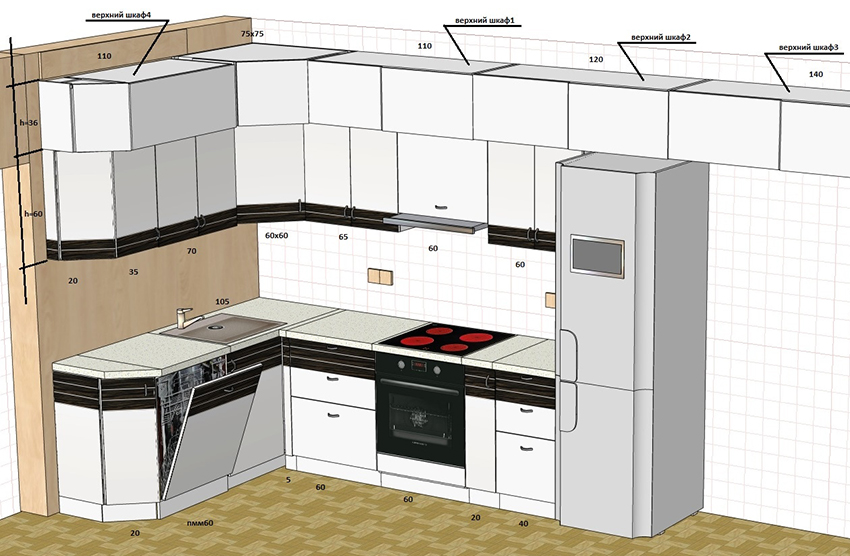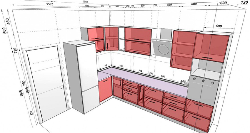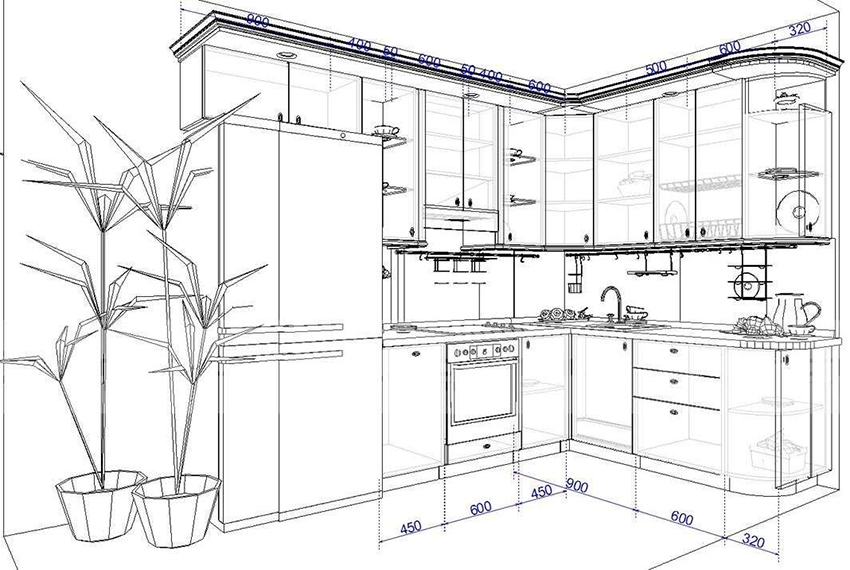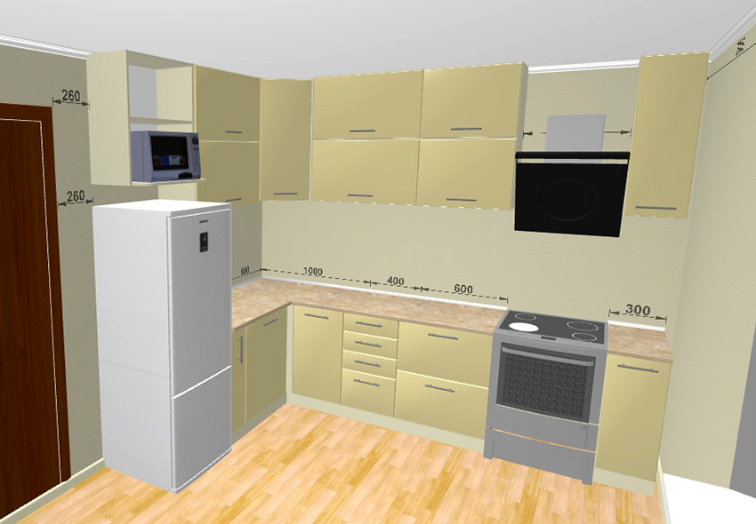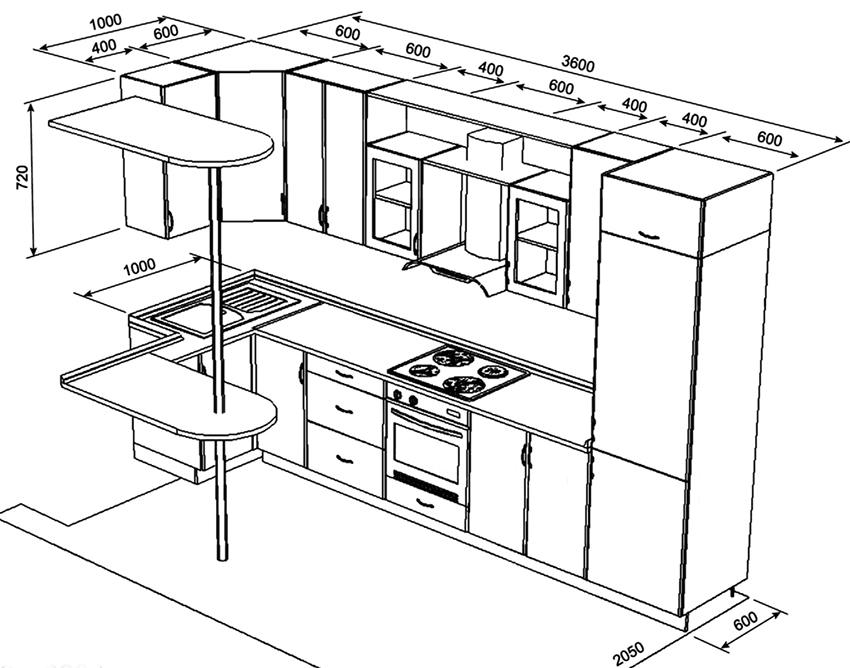 Important! When creating your own drawing, it is recommended to preview photos of kitchen projects with dimensions that best meet the required characteristics.