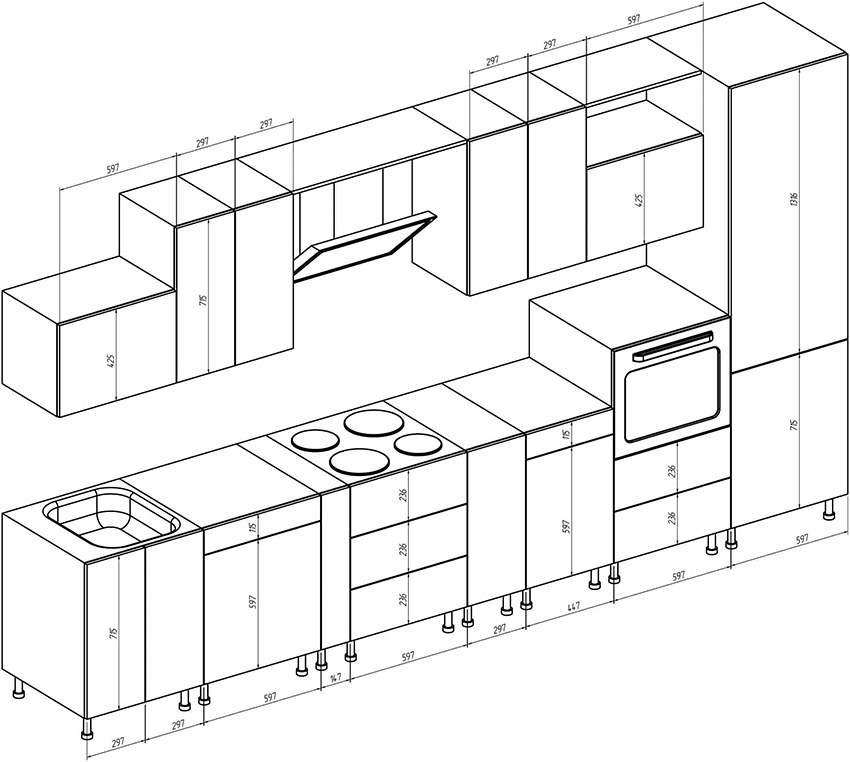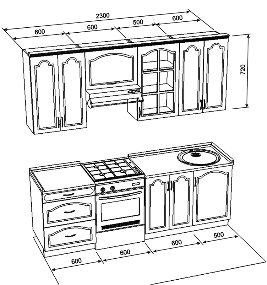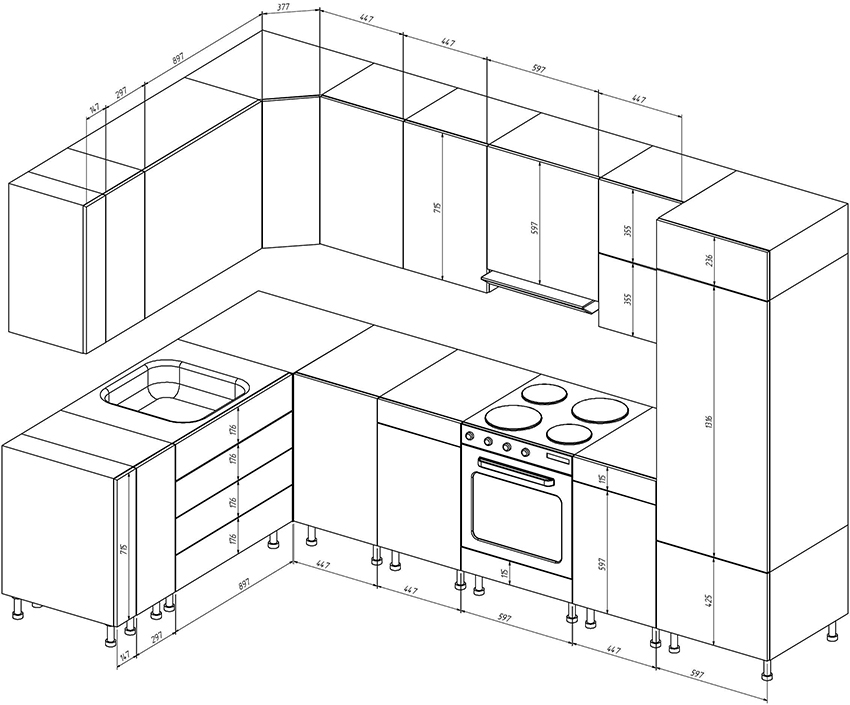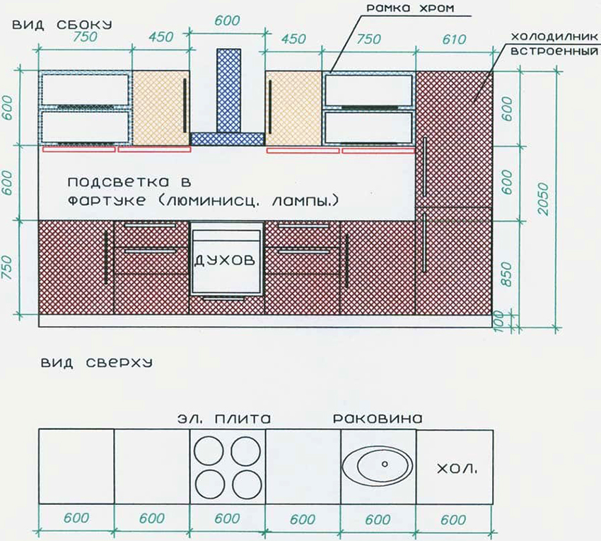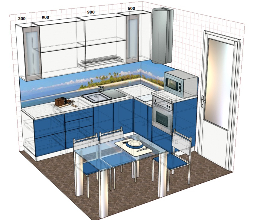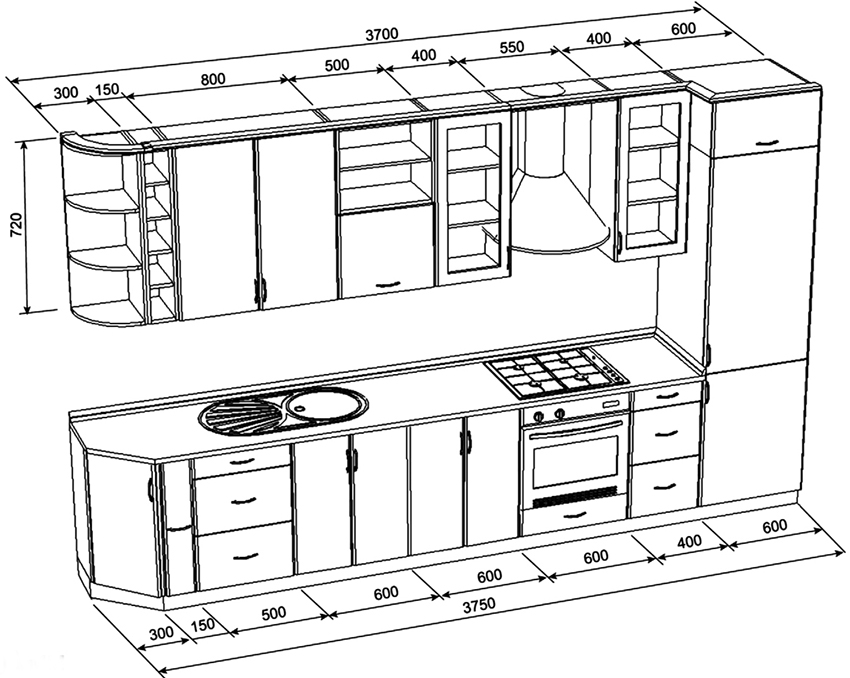 Important! When creating your own drawing, it is recommended to preview photos of kitchen projects with dimensions that best meet the required characteristics.