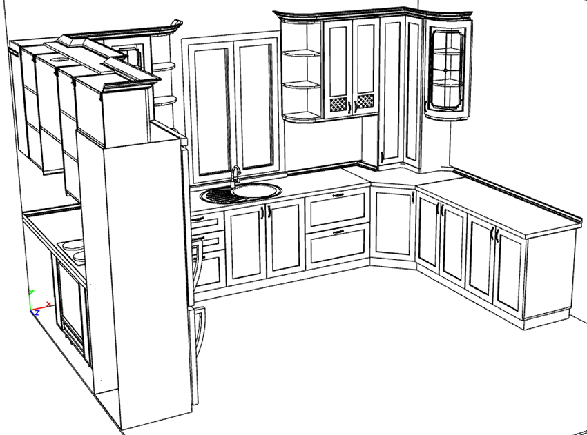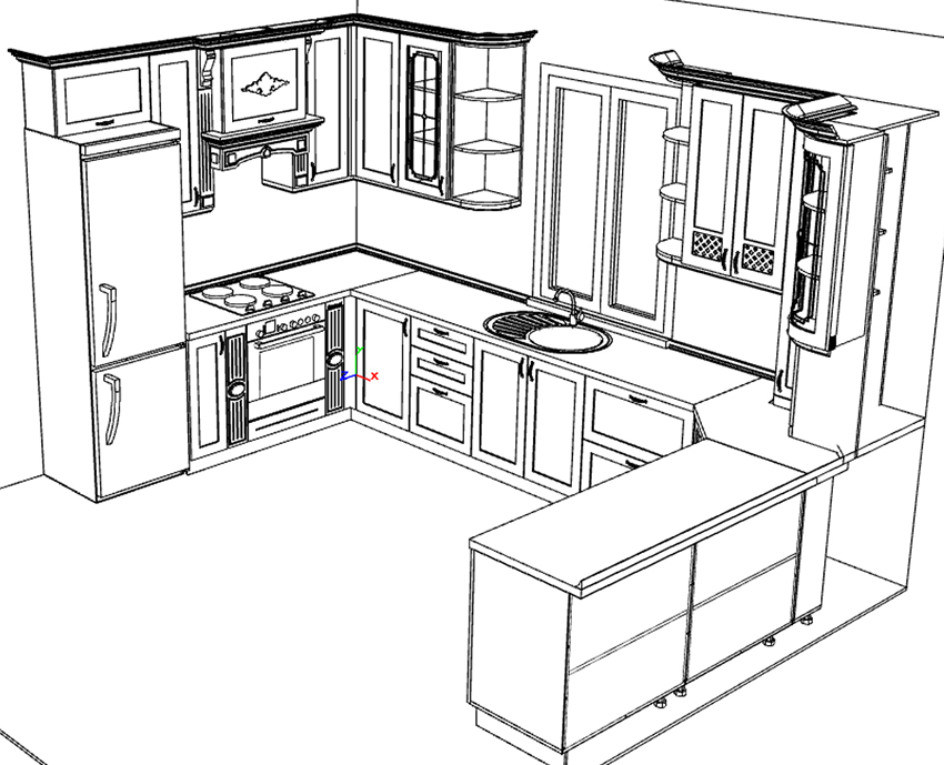 After a few sketches have been drawn showing the kitchen from different angles, you need to fill the space with virtual pieces of furniture. Before proceeding with the application of furniture to the diagram, it is recommended to first make copies of the drawings, so that in case of an error you do not have to re-draw the room.