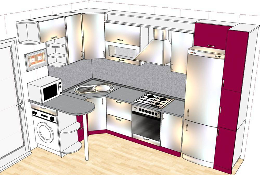 Important! The type of layout is influenced not only by the size of the room, but also by the configuration features. Therefore, before deciding on the layout, you need to decide how functional it will be in a particular kitchen.