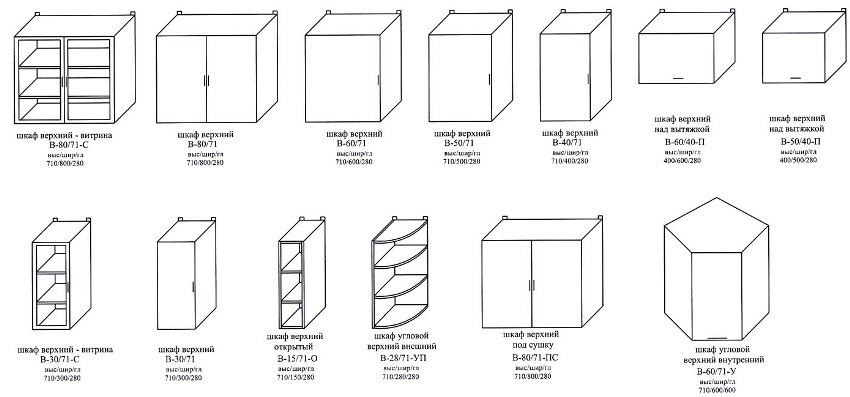 The choice of the size of kitchen cabinets is dictated by different conditions, in particular their location. Given this feature, they are divided into the following types:
