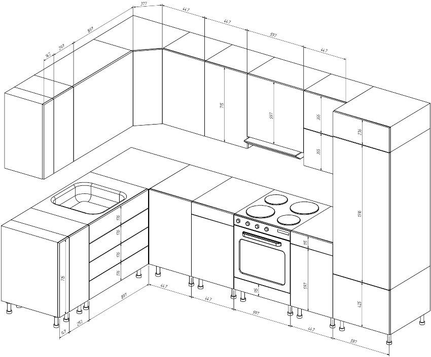 The parameters have a close relationship, so it is important to respect the dimensions, this will help preserve the functionality of the kitchen