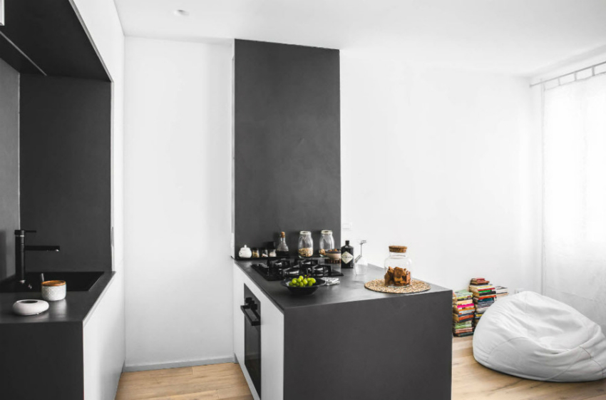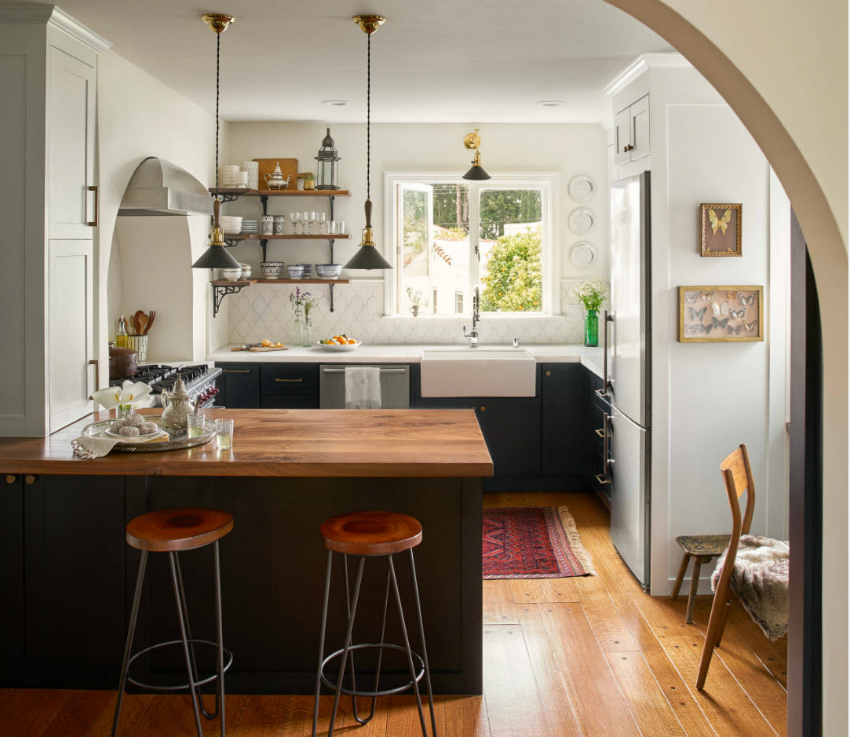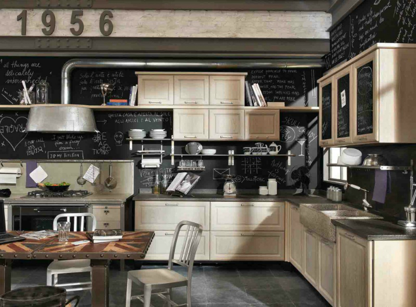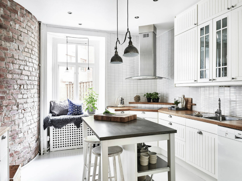 Budget and modern options for kitchen renovation are exposed brickwork and painting the walls with slate paint