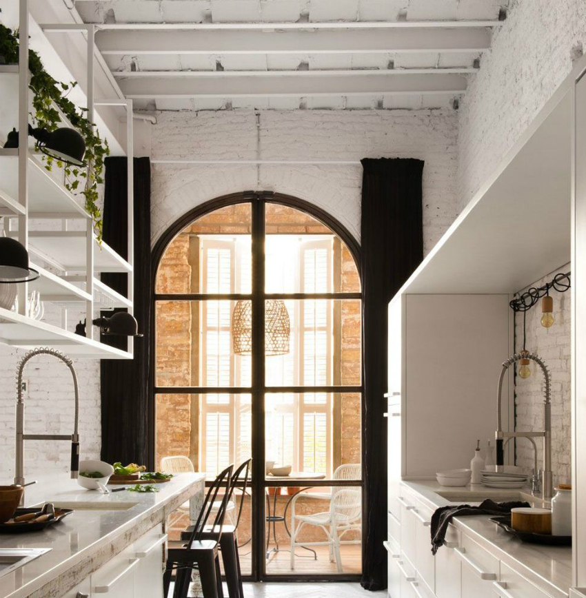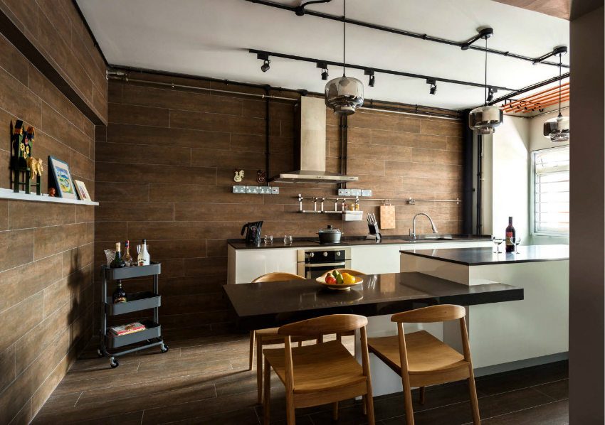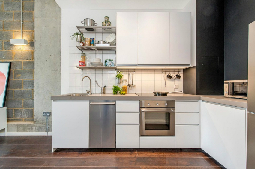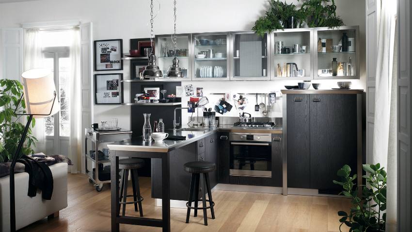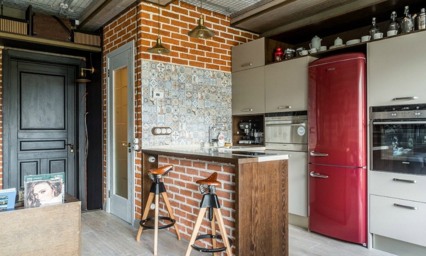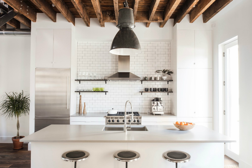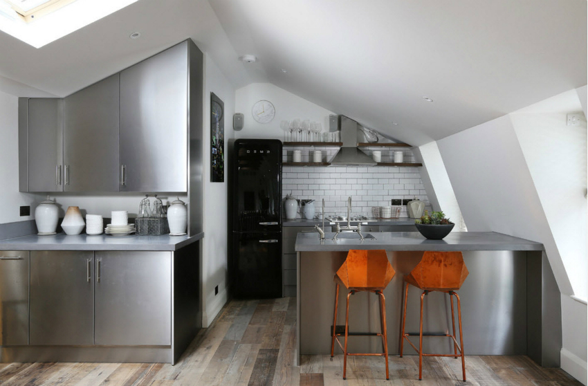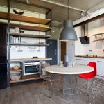 Open contrasting tubes are characteristic of the design loft style kitchens