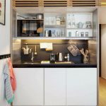 A practical idea for renovating a small kitchen is the use of sliding or folding tables, mini-tables that can become an additional workplace, built-in baskets, nets, carousels, lifting and sliding structures for storing kitchen utensils, spices, cereals and other items. The impeccable ordering of all items in the kitchen is created by the parallel placement of niches and wall cabinets.
