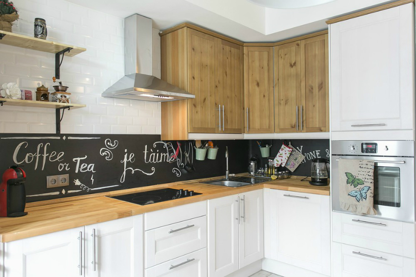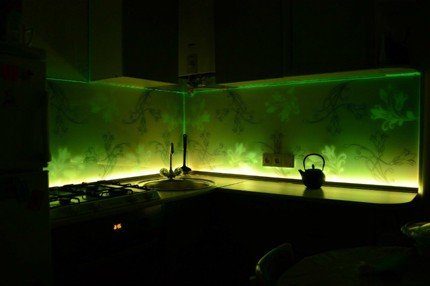 A new-fashioned design idea is the use of tempered glass, which looks very beautiful and unusual, thanks to the unique technique of applying paint and special photo printing. This modern technology is capable of providing a wide variety of different options. Renovating a kitchen in Khrushchev using this material will look elegant and visually enlarge the small space.
