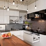 After all surfaces of the kitchen are completely dry, you can proceed with the installation of furniture and the installation of household appliances. An important step in kitchen renovation is to create the correct bright lighting. This is especially true for the working area. Spotlights can be installed here. Above dining table you can hang wall sconces. If the kitchen has a high ceiling, tiered lighting will look good.
