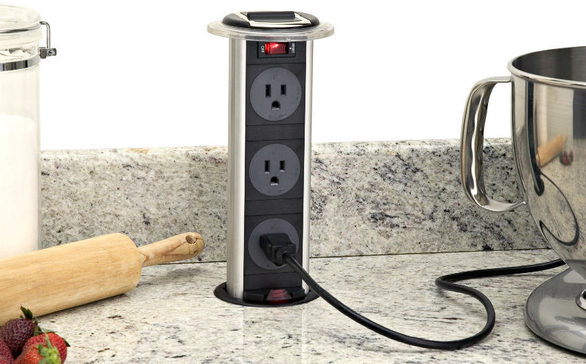 The upper level is determined at a height of 2.3-2.4 m above the floor level.This is the height of the wall cabinets. Sockets are required to connect a cooker hood, microwave oven, TV. The middle level reaches 1 m from the floor level. This is the space above a countertop or table. Here you need to connect a food processor, mixer, meat grinder, coffee grinder. The lowest level is 10 cm from the baseboard. Such sockets are necessary for connecting a refrigerator, electric oven, washing machine and dishwasher.