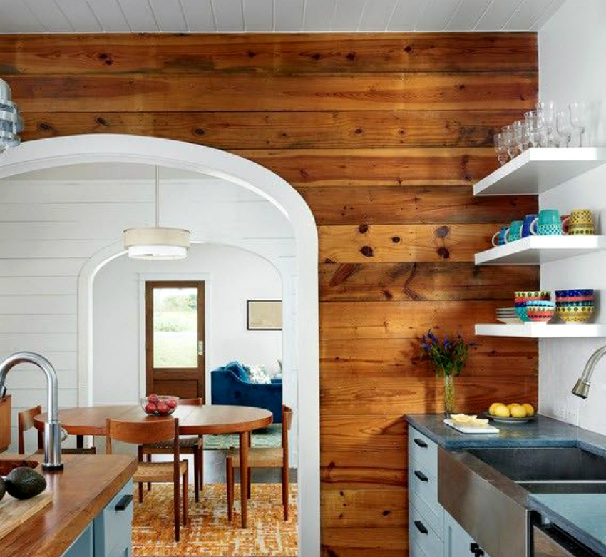 Useful advice! Thermal wood is ideal as a wooden covering for the kitchen, which is resistant to moisture and temperature fluctuations inside the room. The main disadvantage is the high price.