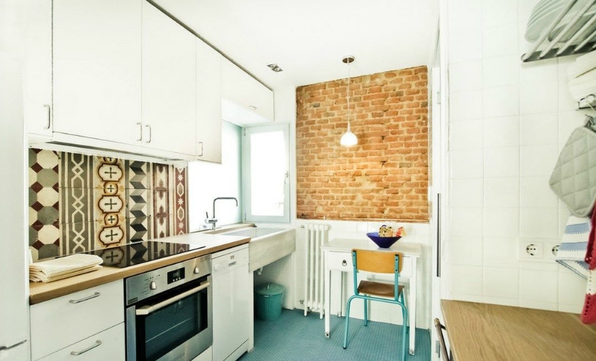 Suitable as a decoration for kitchen walls ceramic tile, which is able to serve for many years without losing its aesthetic appearance. With its help, you can arrange not only a kitchen apron, but all walls of the room. Today on the market you can choose tiles of various sizes, styles, colors, textures and textures. Variety and assortment will inspire and present new ideas for renovating a small kitchen. Photo catalogs of ready-made solutions from manufacturers will also become an indispensable assistant when choosing.