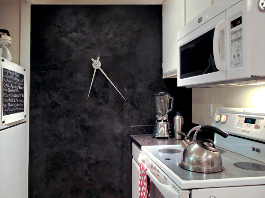 Many kitchen renovation design projects propose to use decorative plaster, which will create an unusual pattern on the surface that can decorate kitchen interierwhile hiding all the minor errors on the walls. This is one of the most spectacular and luxurious ways to decorate a room. For this solution, mineral or synthetic plaster can be used. The mineral contains cement, lime and gypsum, and the synthetic one is made of polymer materials.