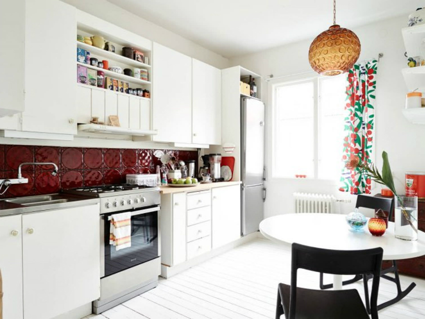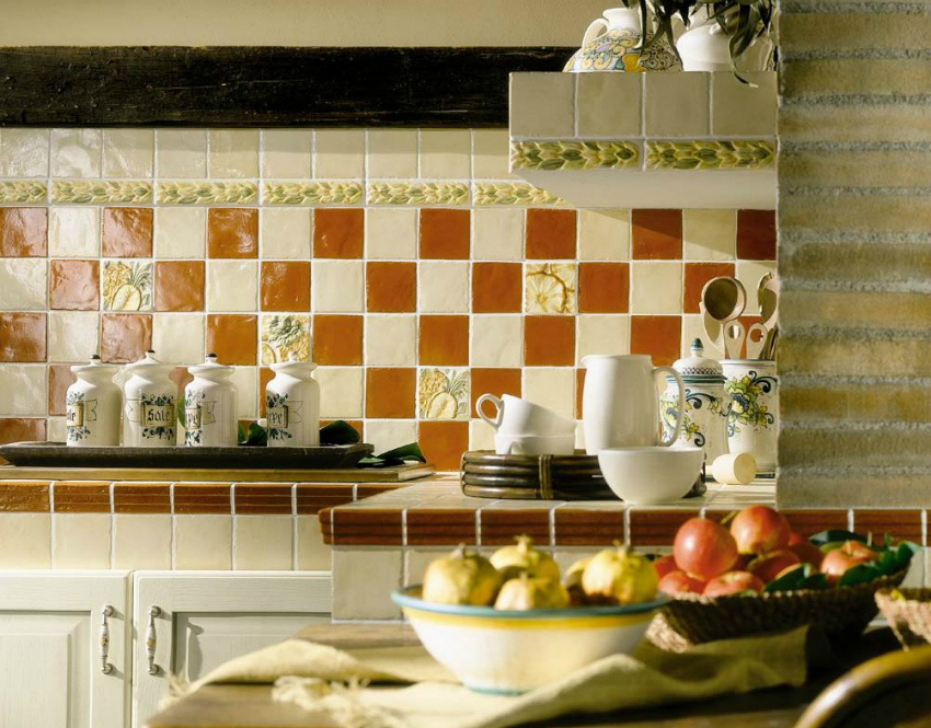 Useful advice! Having chosen ceramic tiles as a material for decorating kitchen walls, it is advisable to choose a different floor covering. Otherwise, the surfaces will merge and resemble a bathroom.