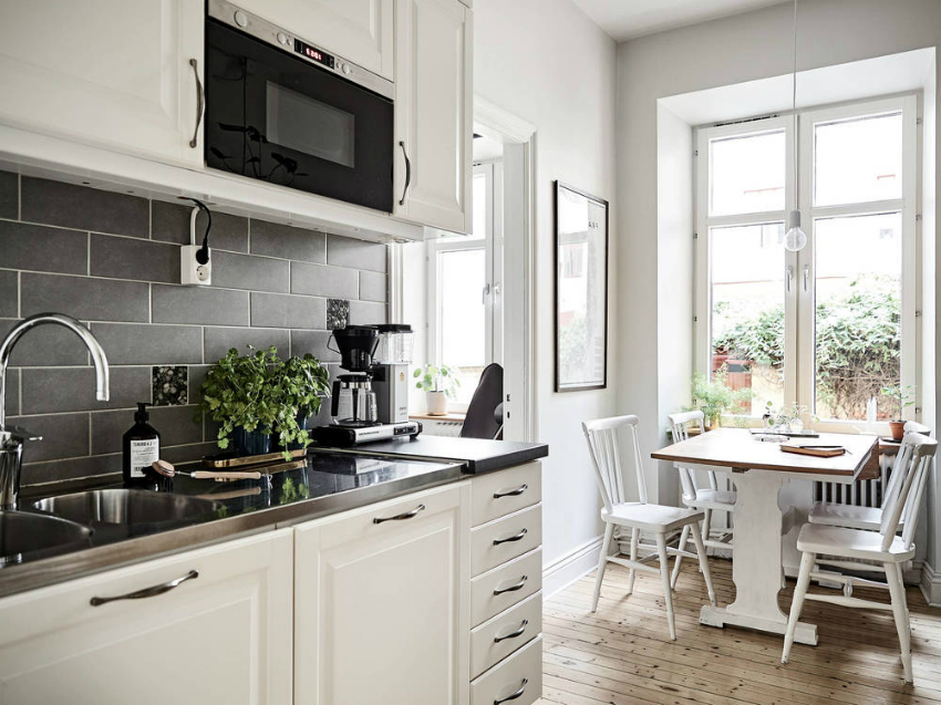 The kitchen is the most functional place in the apartment, which usually has a small area. Here it is important to conveniently and rationally arrange furniture and household appliances. Since during cooking in the kitchen it is usually humid, hot and splashed with grease, the finishing materials and furniture must be moisture resistant and easy to clean.