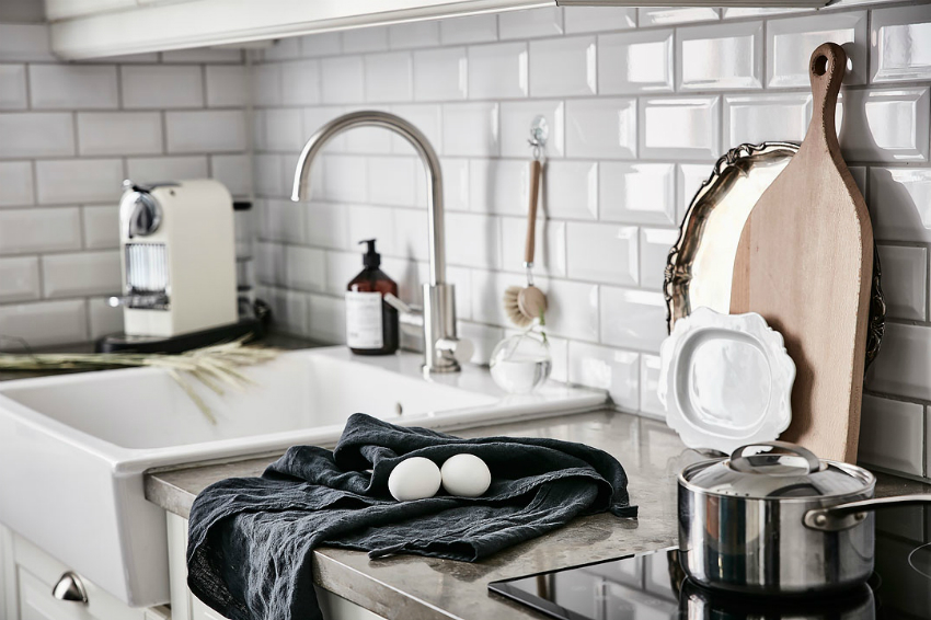 The most popular materials for cladding the kitchen work area are ceramic tiles and apron made of plastic