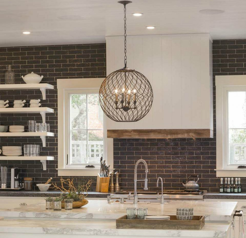 One large pendant lamp can be replaced with several graceful hanging lamps or a group of small bulbs with long adjustable bases. By varying the length of the bar, you can create original lighting solutions.