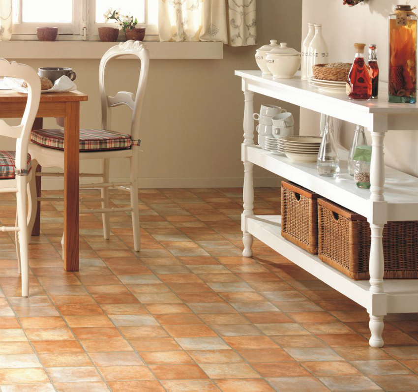 Redecorating an economy class kitchen involves using inexpensive flooring. Linoleum will perfectly cope with this task. You can choose a pattern that imitates wood, stone or parquet, and will look like an elite class flooring.