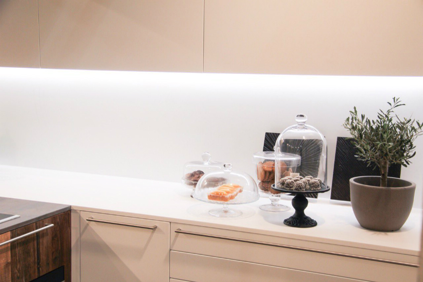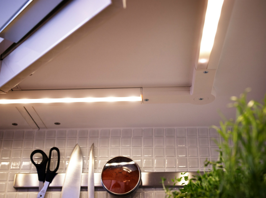 Lighting in the work area should be intense, effective and neutral so as not to distort the natural appearance of the food. Some kitchen sets already provide built-in lamps in their design.