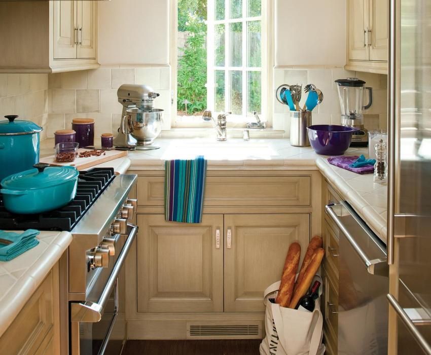 For finishing small kitchens, it is preferable to use the following colors: