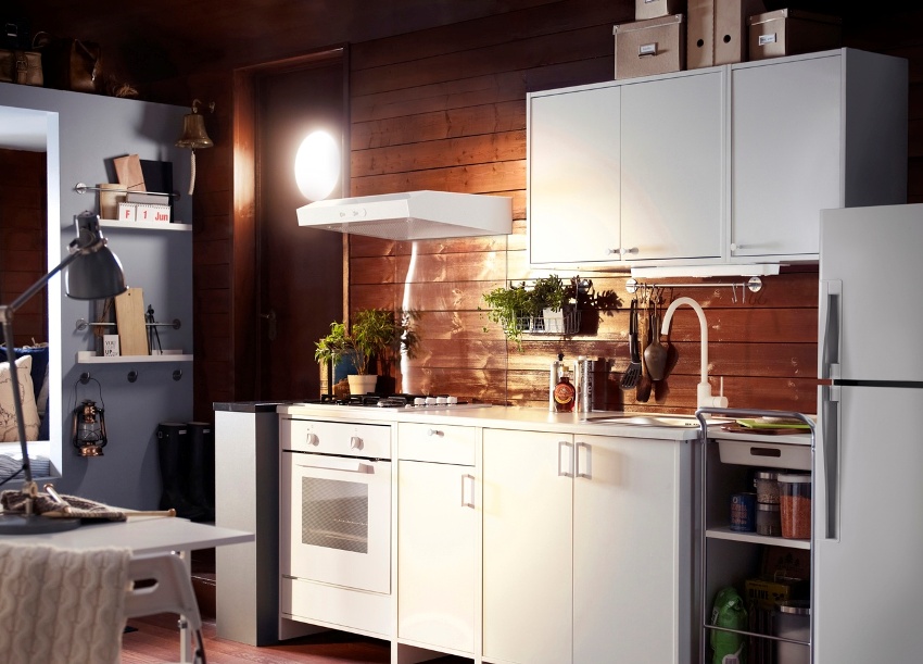 It is very important to ensure proper air circulation in the room. This is to prevent cooking odors and gas fumes from accumulating in a small room. To do this, you need to connect ventilation to the central system or make a direct outlet in the kitchen wall.