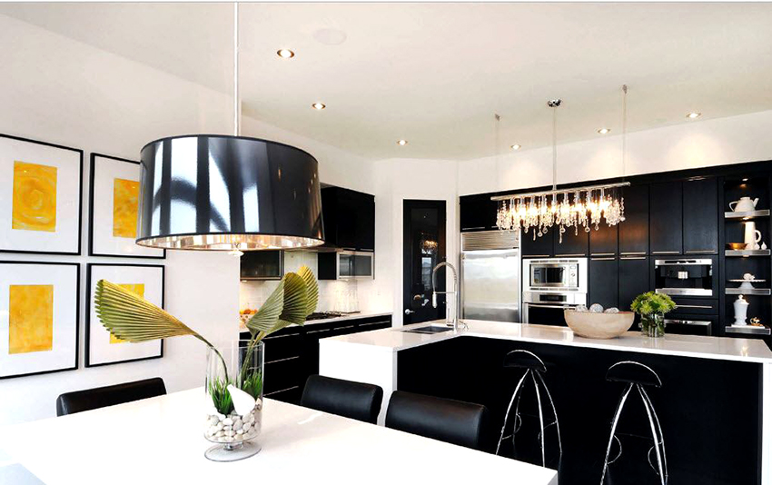 The combination of black and white has long become traditional, but if you want to make black the main color, then the design of such a kitchen becomes much more complicated. In this case, there is a risk of creating a too gloomy and dark interior. If you look at photos of kitchens, colors are most often used in a ratio of 60 to 40%, and most of them are given a white tint.