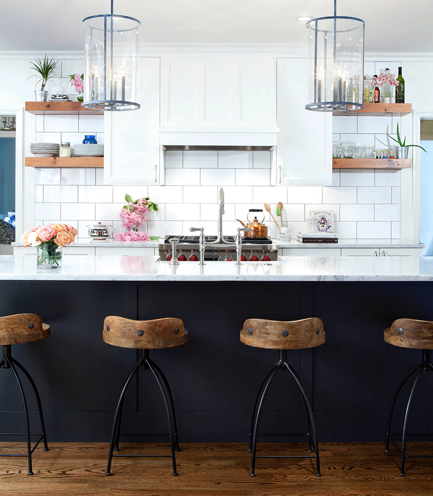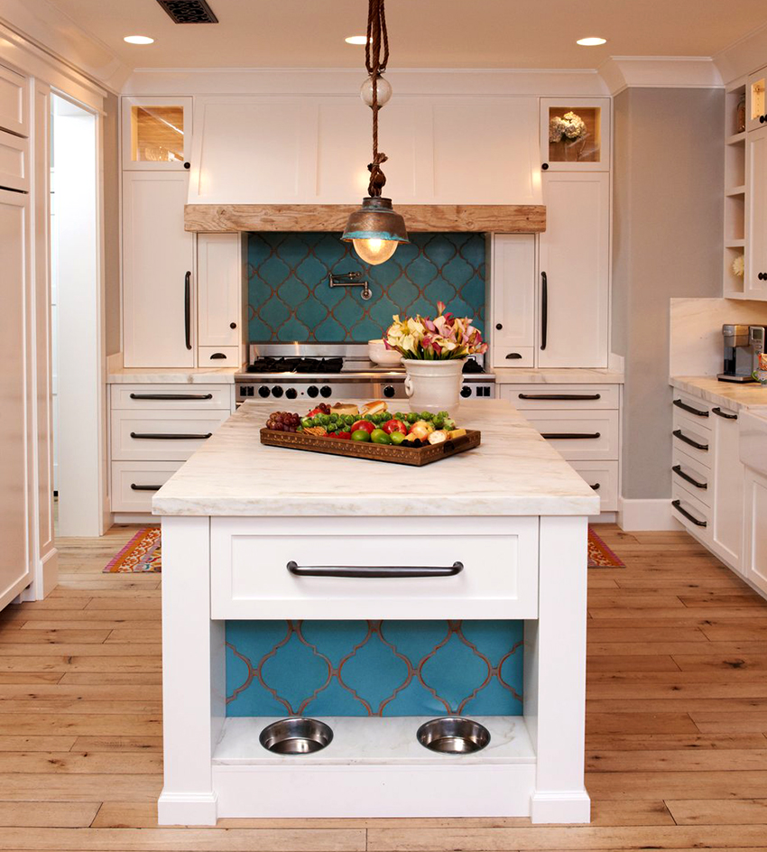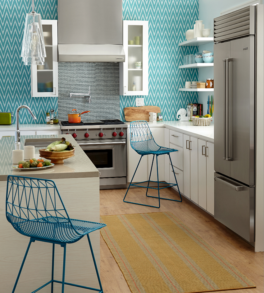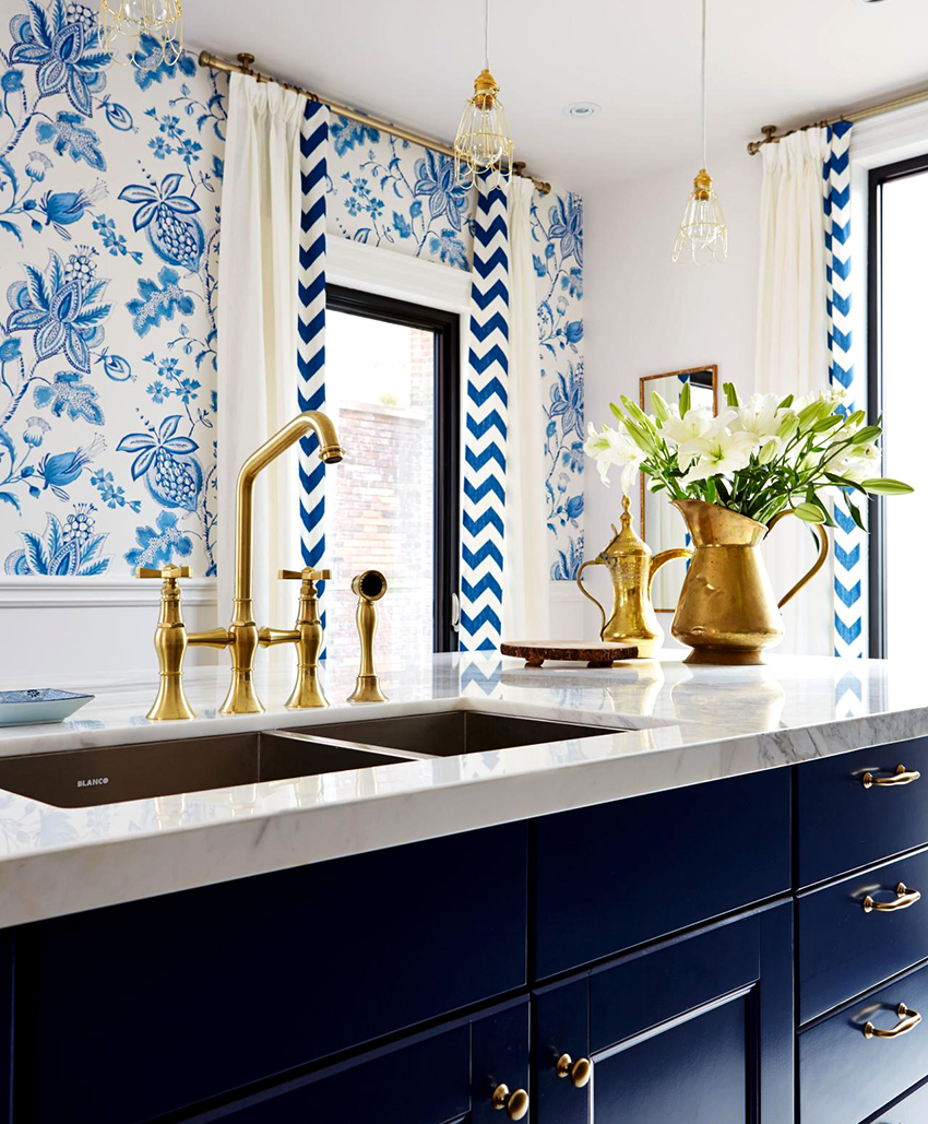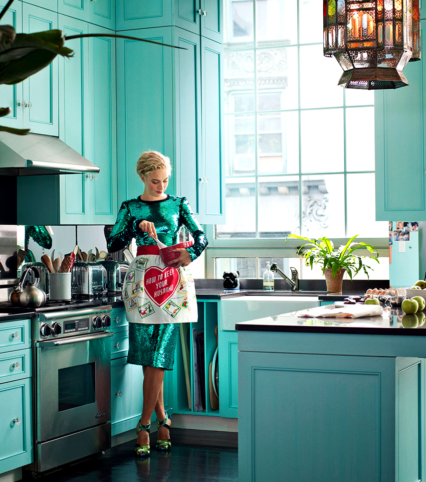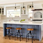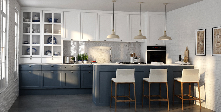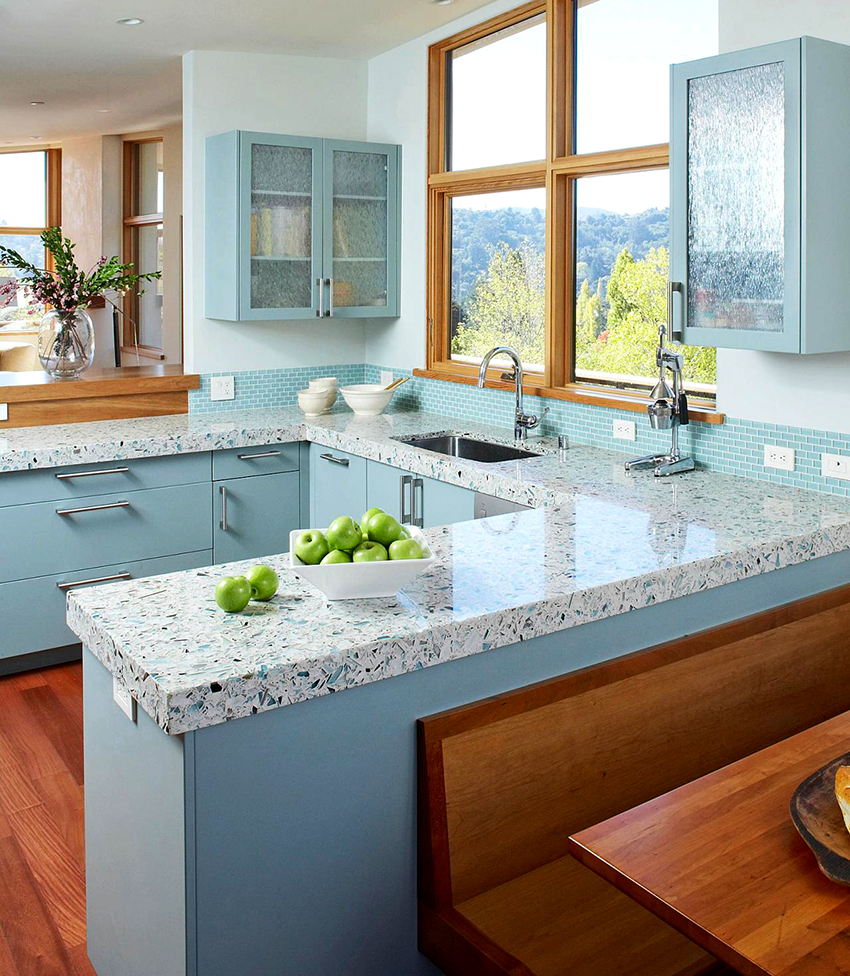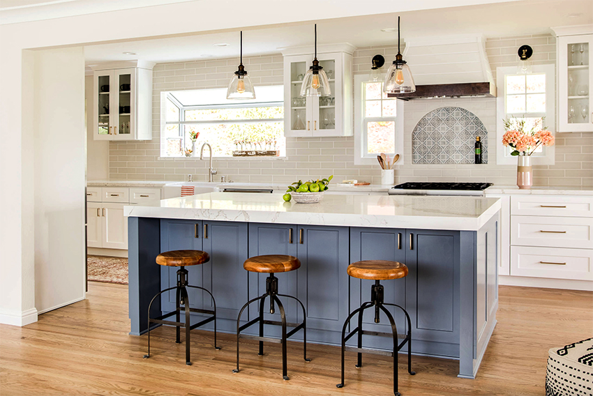 Light cold tones visually increase the height of the walls. Therefore, if the room is not high, it is advisable to make the kitchen in blue, while it is recommended to leave the walls plain.