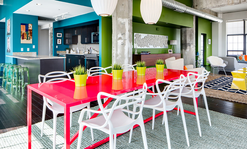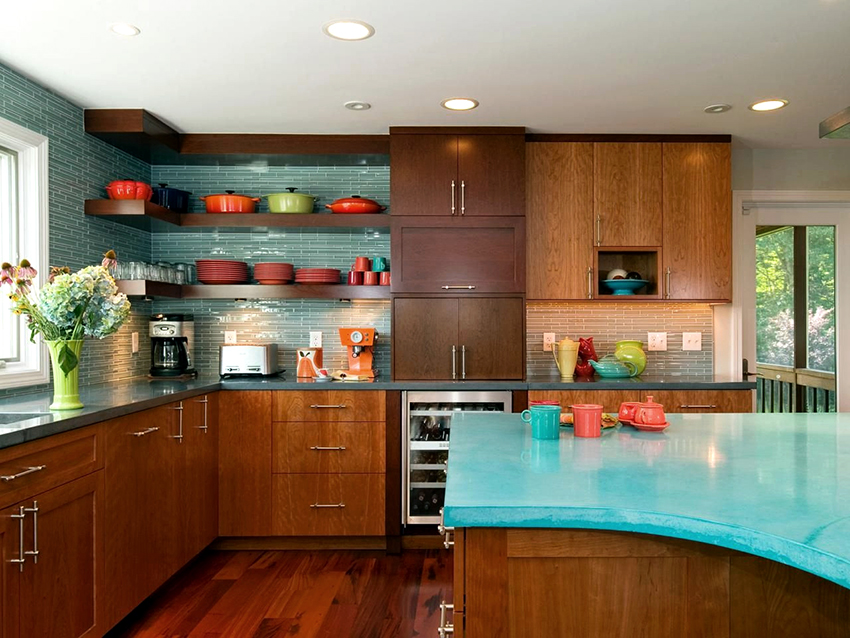 - If the kitchen is large and does not need to save space, it is advised to give preference to saturated and bright colors.