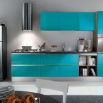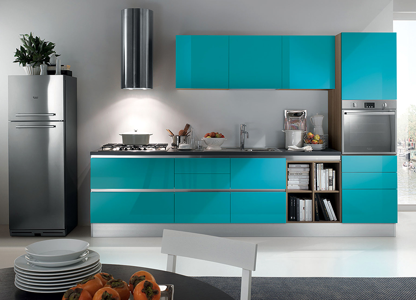 - Minimalism and hi-tech. Before choosing a color for a kitchen set that matches a turquoise high-tech interior, you need to understand that glossy facades should be preferred.