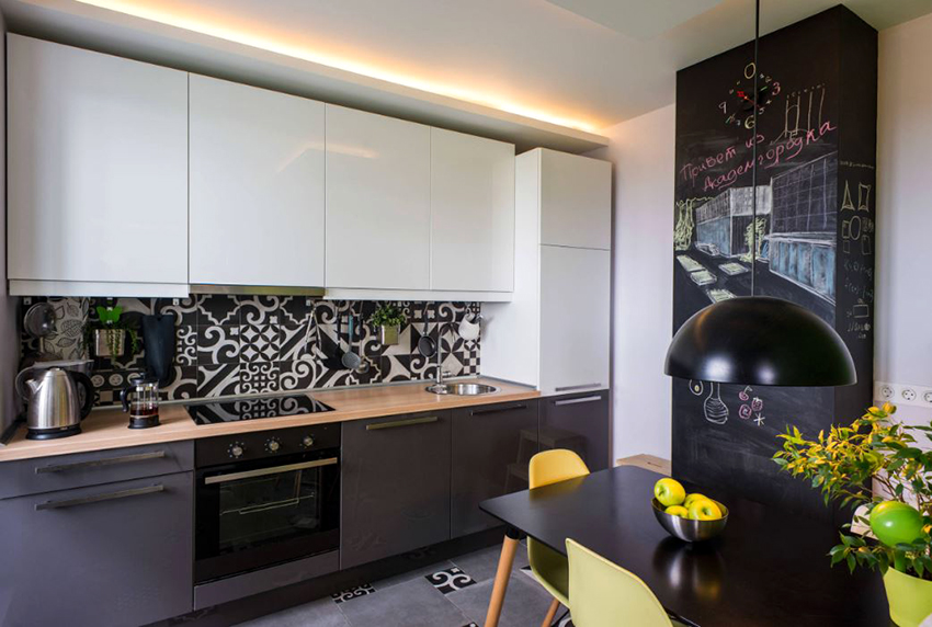 Helpful advice! The best way to design black and white kitchen it is considered an option when the walls and ceiling are made in light colors, and the floor is in dark colors. It is better to make the upper facade light, and the lower one can be left in black. The worktop can be light, and the kitchen apron can be black and white.