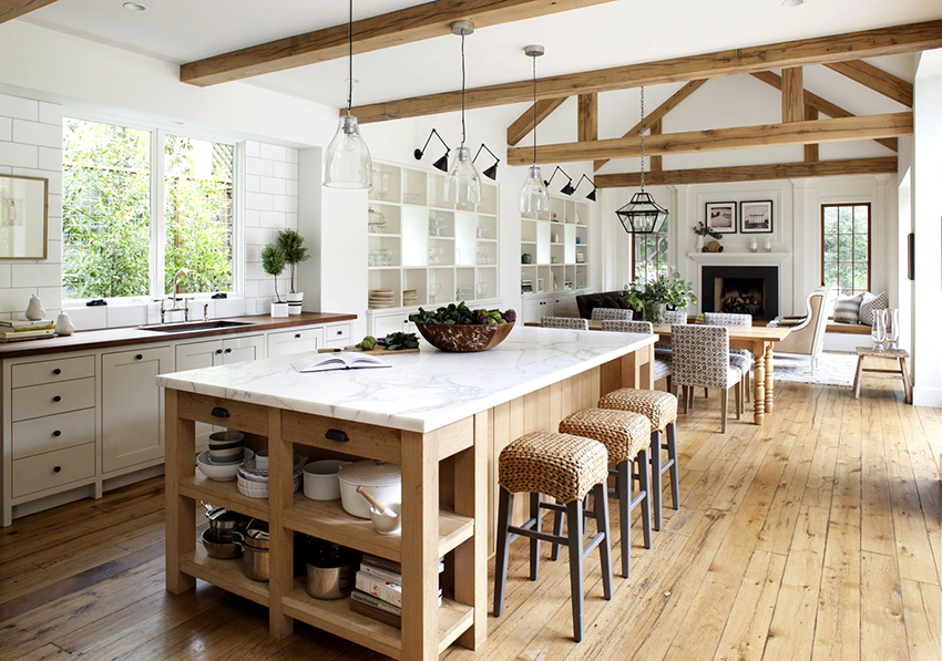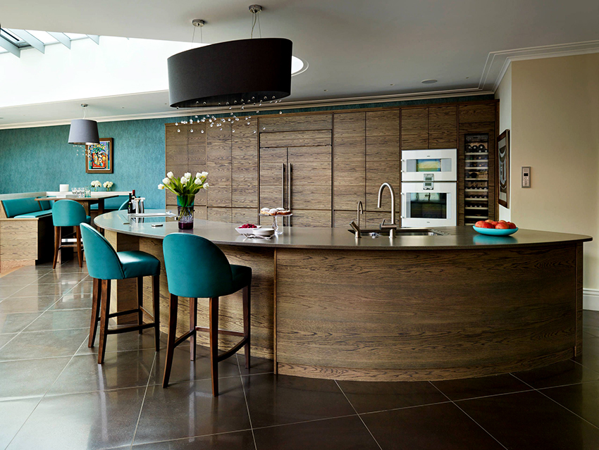 Large kitchens do not need to be decorated in cold and too light colors. If you look at the photos of the colors of kitchens with significant areas, you can see that natural colors like wood, orange, cherry and coral are most often used. The white and brown kitchen is also considered one of the most sought after options in large rooms.