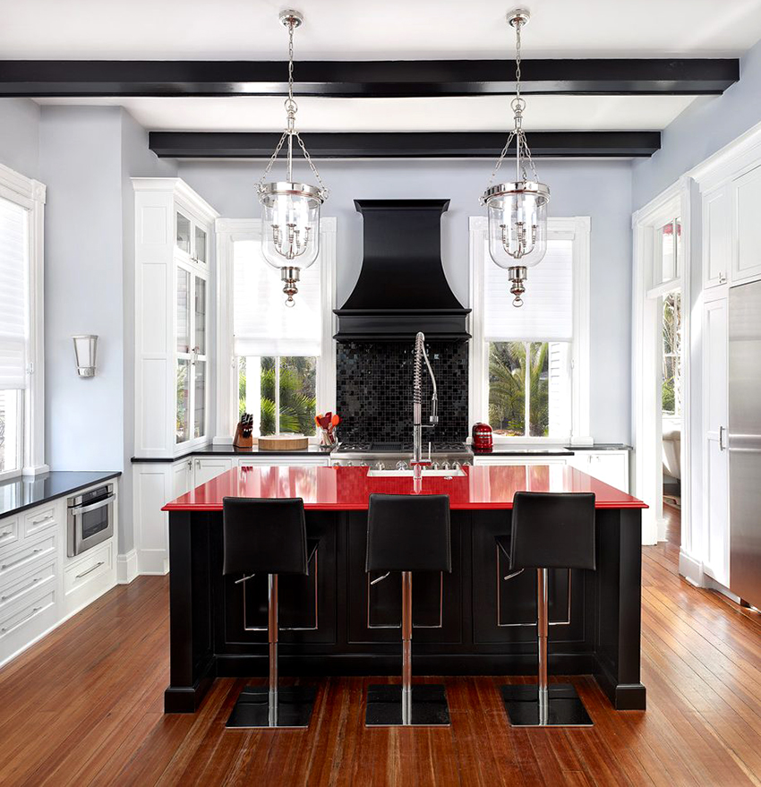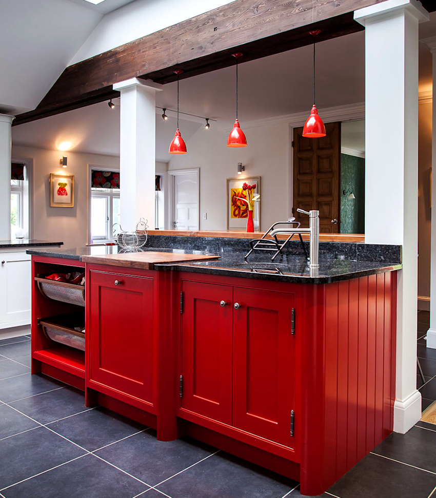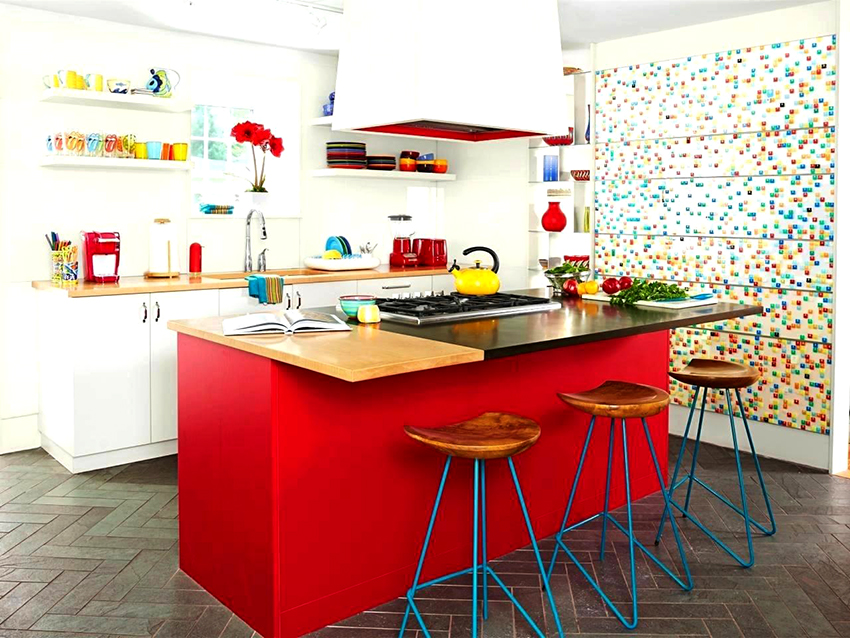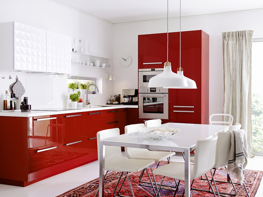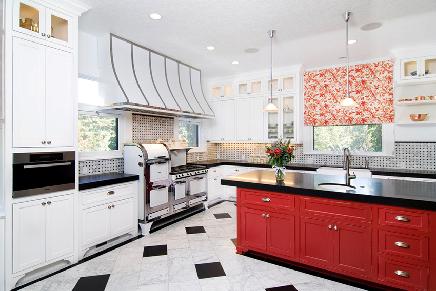Shades of red are recommended for decorating kitchens in retro, Provence, fusion styles. If used correctly, red is also suitable for creating a classic interior. The versatility of this color lies in the fact that it is easy to combine it with other shades and a variety of geometric patterns.