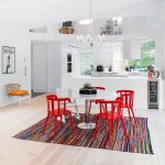 - Pop Art. The style is characterized by light kitchens, which are diluted with bright elements. In this case, it is quite admissible that on kitchen in white there will be a bright red kitchen set or other furniture of the same color.