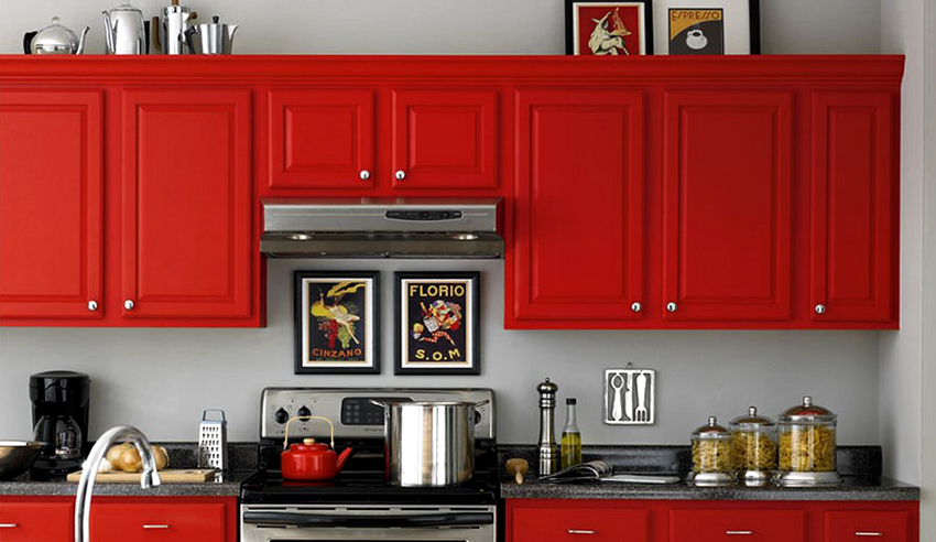 Important! Designers recommend using red only for decorating large kitchens, because it visually narrows the space and is very tiring in a cramped area.