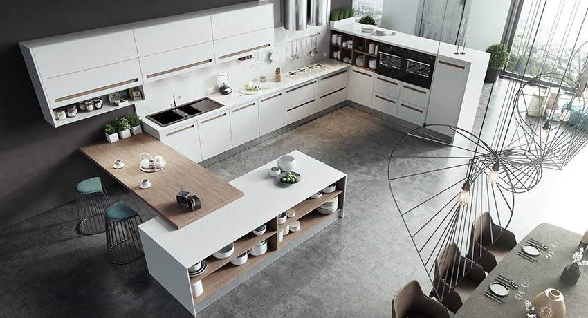 The built-in kitchen is a good design solution that allows you to save free space by integrating appliances into the furniture. With the correct and competent planning, you can not only create a convenient and comfortable place for effective work in the kitchen, but also get a radically new look of the familiar room.