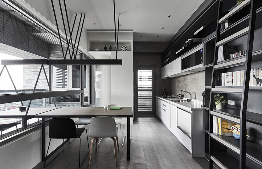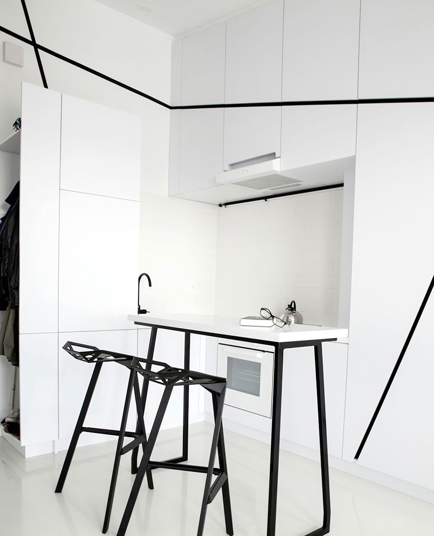 Helpful advice! To save space, it is recommended to provide a table top with an adjustable height, which can be used as a dining table.