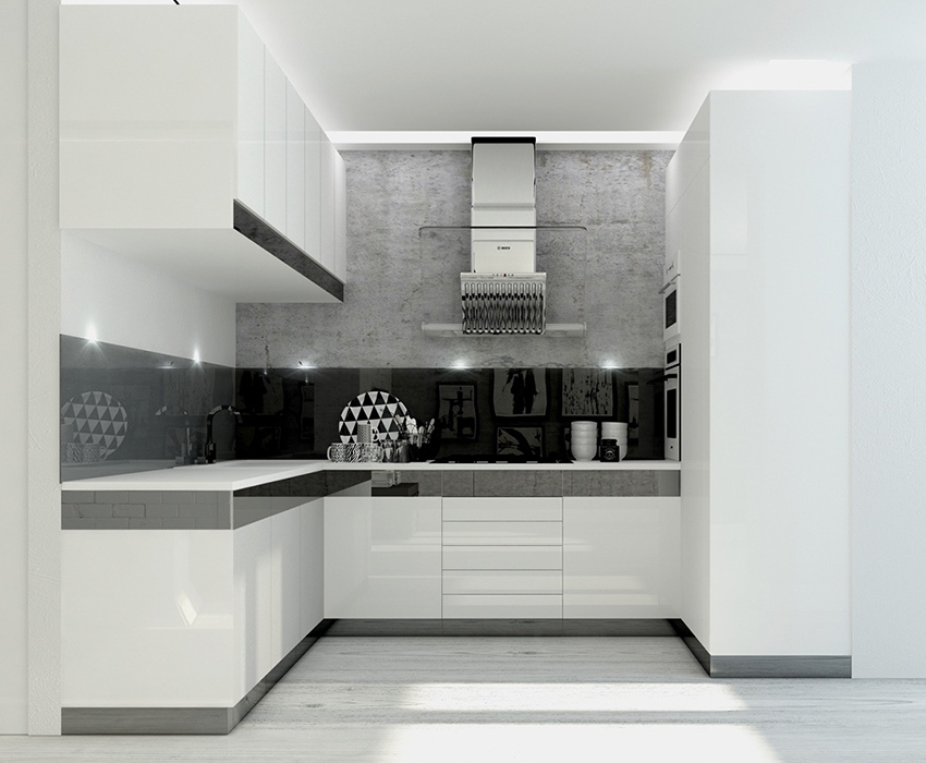The high-tech kitchen is characterized by increased functionality and comfort. The latest materials are used to create it. This style is characterized by many lockers, drawers, a variety of shapes and colors, which are displayed by photos of built-in kitchens for a small kitchen.
