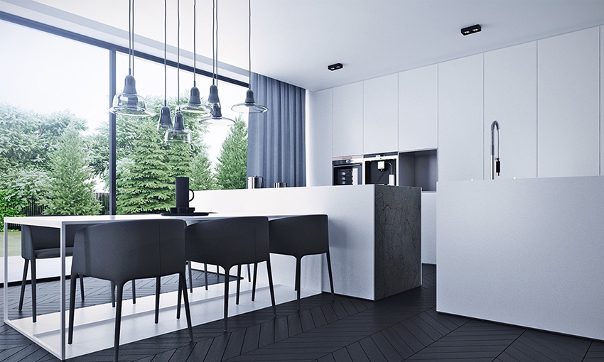 The modern design style is very popular, where all the equipment is hidden as much as possible in the space, which is clearly confirmed by the photo of the kitchen design with built-in appliances. The main features of minimalism are integrity and harmony. Built-in kitchens are represented by monolithic structures that outline the overall space with a clear geometry of simple lines.