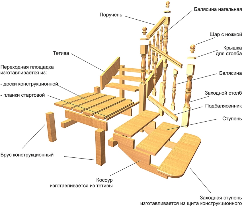 In order for the staircase to serve its owners for a very long time, all its elements must be created from the same material. Moreover, you need to give preference to the same type of wood.