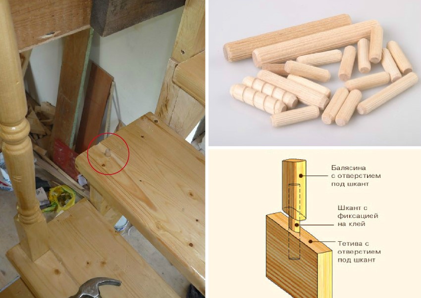 Dowel mounting is popular. Original photos of wooden balusters for stairs with such mounts definitely attract the attention of consumers. First, they need to be cut from a specially selected bar. Their cross section should not be less than a quarter of the total rack volume. The dowels should be of impressive length. It usually equals two diameters.